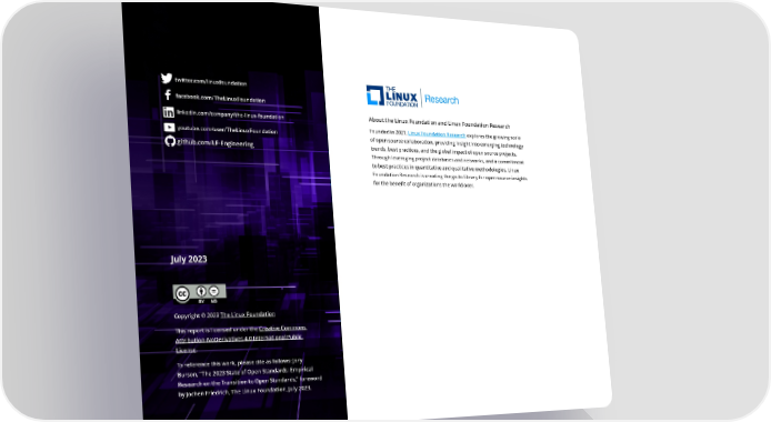 twitter.com/linuxfoundation facebook.com/TheLinuxFoundation linkedin.com/company/the-linux-foundation About the Linux Foundation and Linux Foundation Research youtube.com/user/TheLinuxFoundation Founded in 2021, Linux Foundation Research explores the growing scale of open source collaboration, providing insight into emerging technology github.com/LF-Engineering trends, best practices, and the global impact of open source projects. Through leveraging project databases and networks, and a commitment to best practices in quantitative and qualitative methodologies, Linux Foundation Research is creating the go-to library for open source insights for the benefit of organizations the world over. July 2023 Copyright © 2023 The Linux Foundation This report is licensed under the Creative Commons Attribution-NoDerivatives 4.0 International Public License. To reference this work, please cite as follows: Jory Burson, “The 2023 State of Open Standards: Empirical Research on the Transition to Open Standards,” foreword by Jochen Friedrich, The Linux Foundation, July 2023.